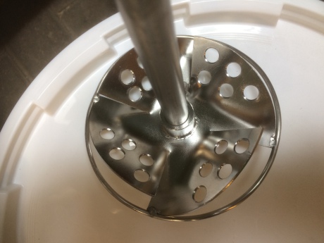 Der Stampfer kann später an der Vormarkierten Stelle eingekürzt und der Griff abgeschraubt werden, so dass man einen Rührstab erhält den man mit zusätzlichen Rühtellern erweitern kann.